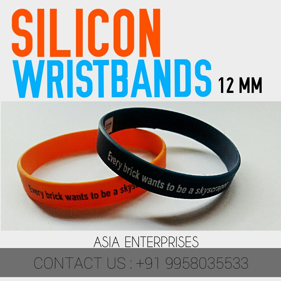 Material: 100% Silicone Rubber Type: Bracelets Suitable for: Unisex Style: Solid color Color: Customized Usage: Decoration  ALL SIZES AVAILABLE 12 MM / 15 MM / 18 MM / 25 MM  MINIMUM ORDER - 1000 PIECES  CUSTOMIZATION IS AVAILABLE AS PER CUSTOMER DEMANDS  REASONABLE RATES.