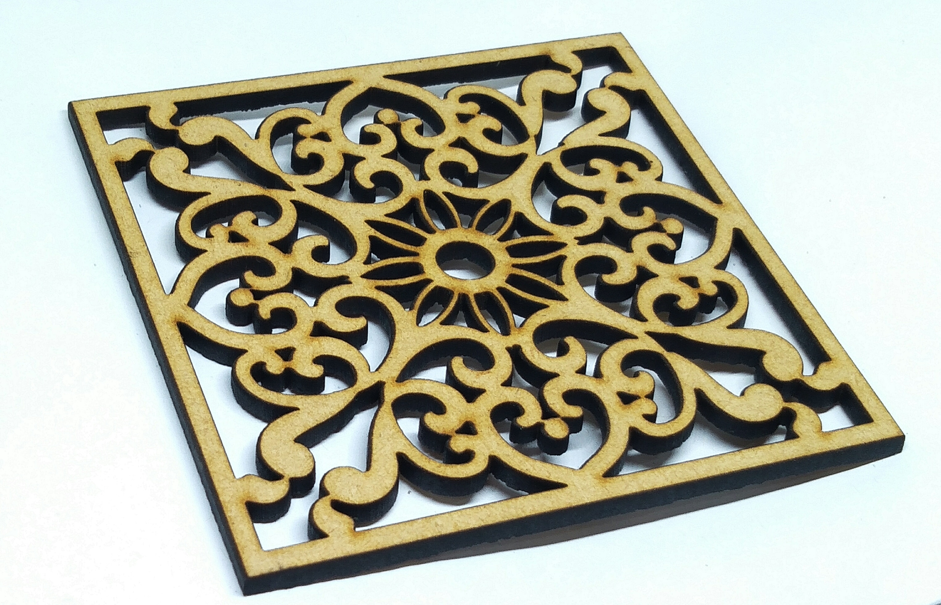 Wooden laser cut tea coasters Presenting our new segment of wooden tea coasters, made with MDF wood this gives the product a authentic look. This products can be used in promotional gifting as well in home decor or for personal use. The royal look of this coasters makes it very attractive but on the other hand the price of this product is pocket friendly. STANDARD SIZE - Length : 80 mm Breadth : 75 mm Thickness : 3 mm All shapes are available Customization is available. Note : As per customer's demand Cost may very upon Quantity, Design, Dimensions of the product. We deal in all major Cities of India :- Delhi, Mumbai, Chattisgarh, ludhiana, Punjab, Assam, kolkata, Bangalore, Karnataka, Tamil Nadu Tags: MDF, Wooden Cup, Wooden tea coasters, Laser cut for wooden, Tea Coasters, Handicraft, Souvenirs